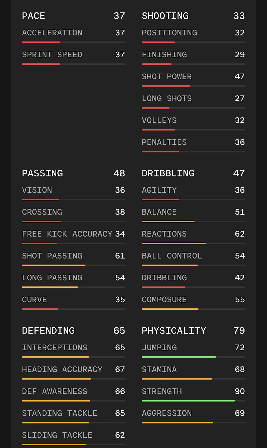 Det han er best på ifølge kortet hans er, ikke overraskende, det fysiske!